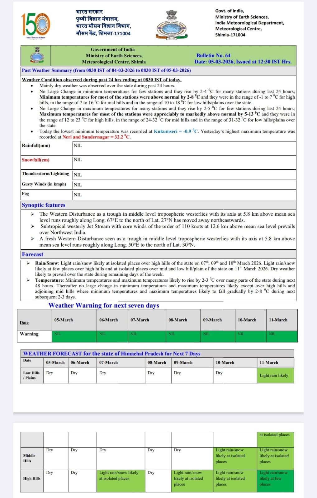 शिमला, 05 मार्च।