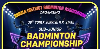 हिमाचल प्रदेश अंडर-11 और अंडर-13 बैडमिंटन चैंपियनशिप 12 से 14 अक्तूबर...