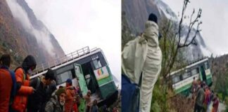 सड़क से नीचे उतरी बस, यात्रियों में मची चीख पुकार