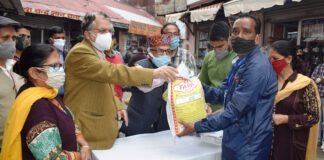 सुरेश भारद्वाज ने राशन किट तथा मास्क किए वितरित